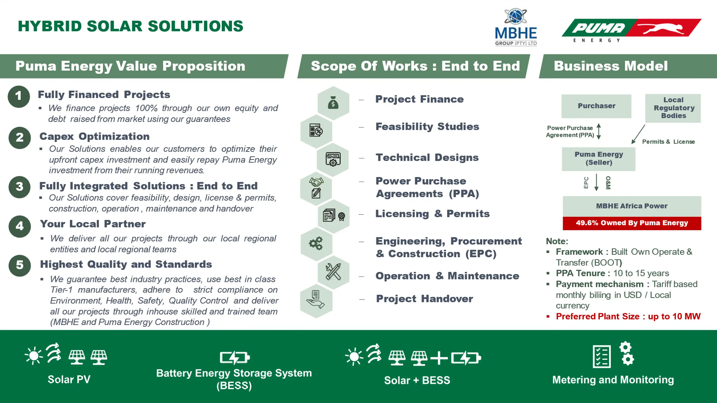 UR and MBHE-Puma Energy Collaborate to develop small scale Solar and BESS Solutions.